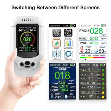 2.8" color liquid crystal display (LCD), 320x240 pixels User adjustable alarm threshold for formaldehyde (HCHO) to alert user of elevated levels Test variab...