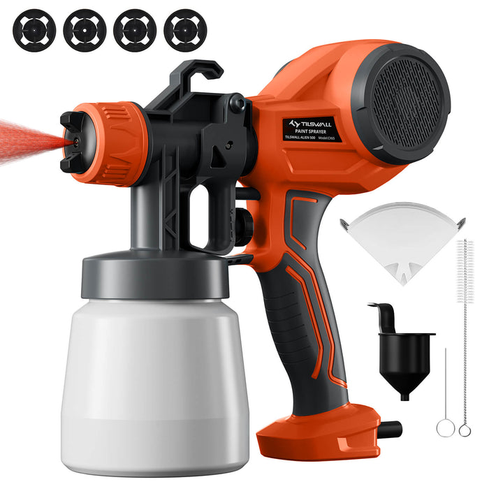 Say goodbye to complicated instructions with the Tilswall Alien500 hvlp spray gun! From assembling, switching on, selecting modes and spraying, it's as easy as using a mobile phone. The spray gun is affordable and versatile, from refurbishing old furniture, landscaping the fence, painting the walls and house, to casual everyday DIY, the Tilswall Alien500 delivers a professional-grade spraying experience that exceeds expectations at an entry-level value!
