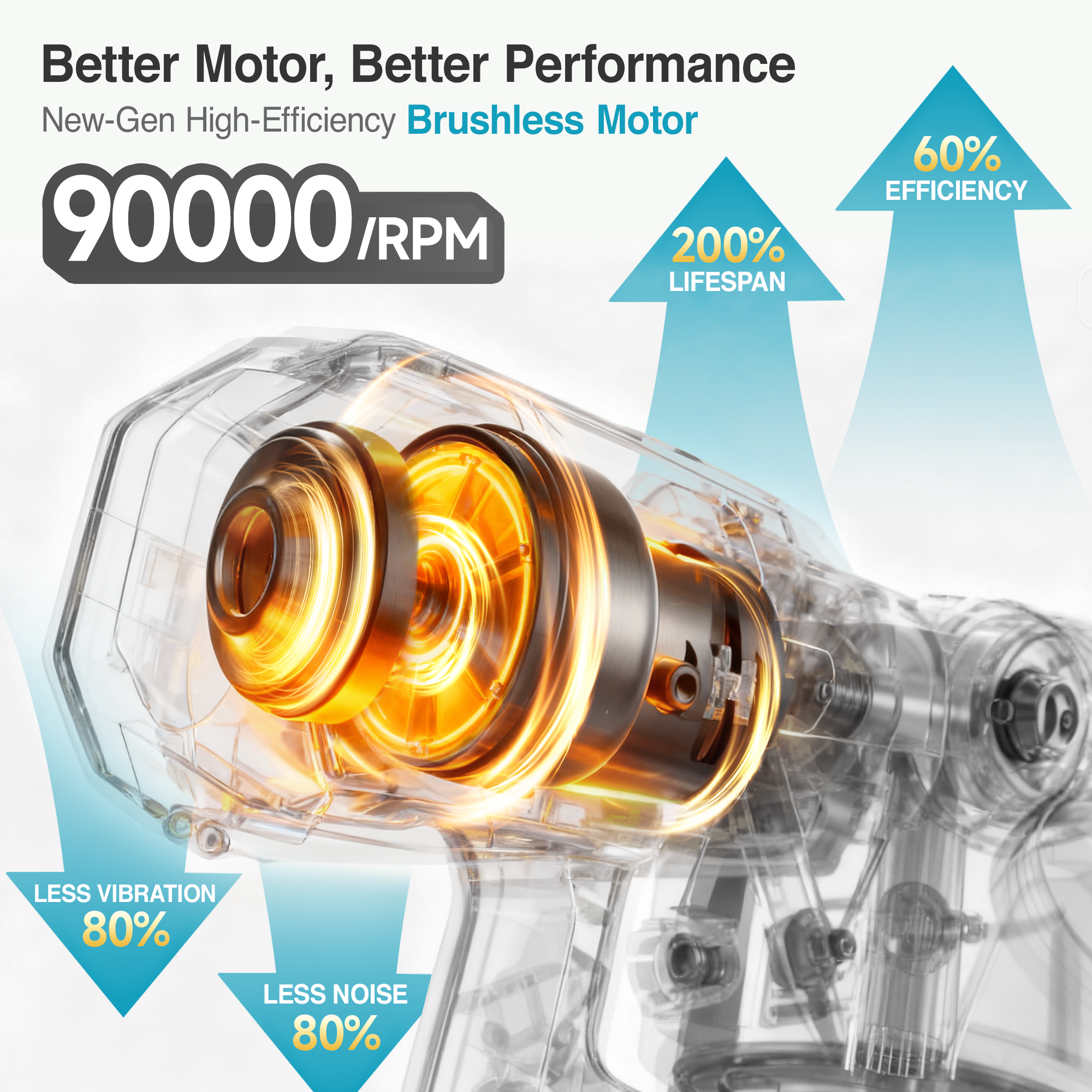 Advanced Brushless Motor Technology Experience superior performance with our advanced 90000 RPM brushless motor. The electric paint sprayer ensures a smoothe...