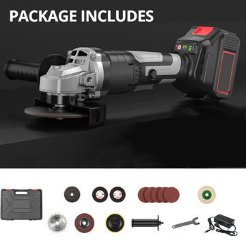 • Package Included: 1*Cordless Angle Grinder; 1* 21V 3.0Ah Battery, Grinding wheel*1, woodworking saw blade*1, shutter wheel*1, metal cutting blade x2, self-adhesive disc*1, deputy handle*1, sandpaper x5, wrench*1, wool wheel*1, fast charger*1