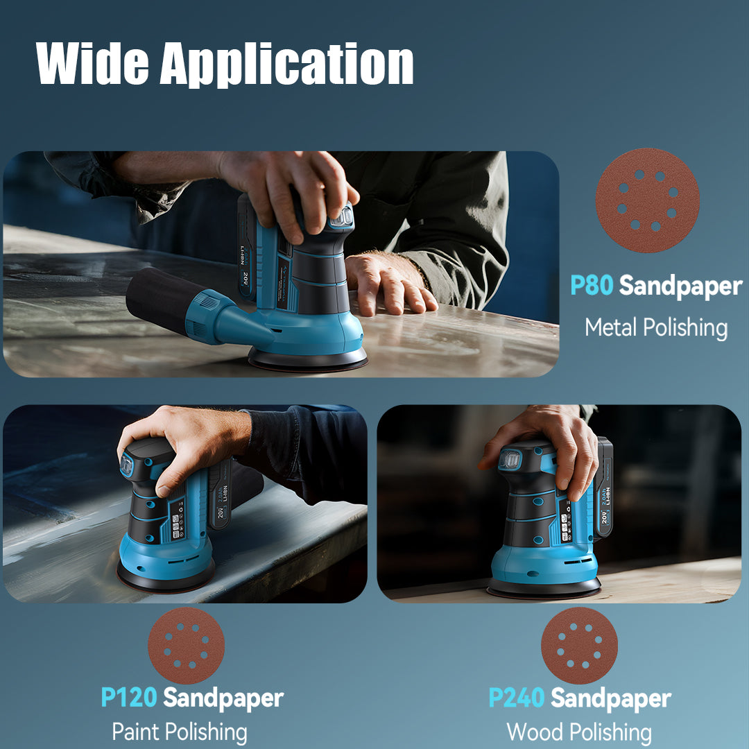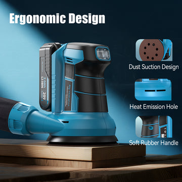 The electric palm sander adopts an ergonomic soft-grip handle and optimized balance, minimizing vibration for a more stable and comfortable sanding experience—even during extended use. Perfect cordless sander for small projects and large-scale projects