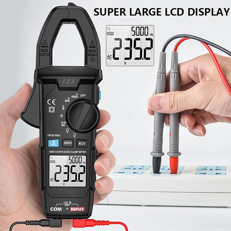 The AC/DC clamp meter has a Backlit screen and LED flashlight so you can see the readings when working in dim or low-light conditions,like electrical closets, under buildings, behind appliances, and in other enclosed spaces,convenient LED flashlight illuminates a dimly lit area
