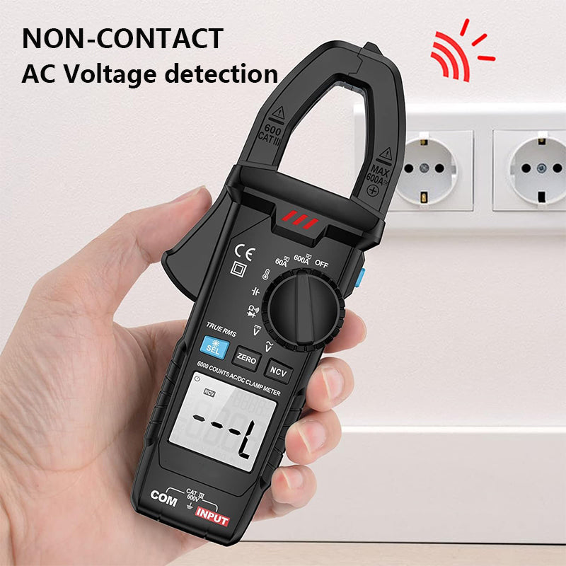 Non-Contact Voltage (NCV) detector can easily and quickly determine whether there is a voltage, without touching any wires. Simply push the NCV button with your thumb.The clamp meter has VFD and LoZ modes that can provide more accurate readings