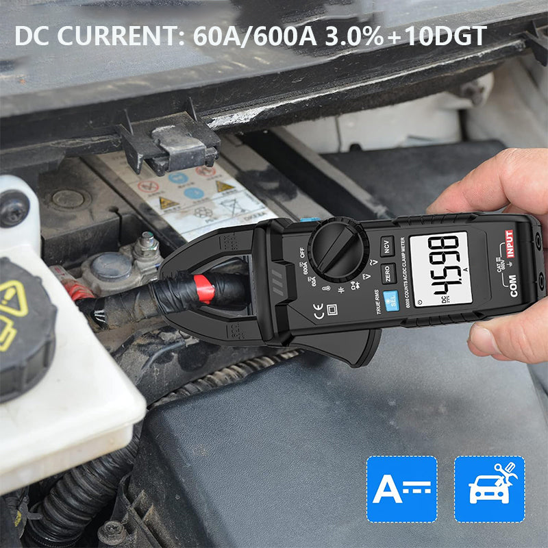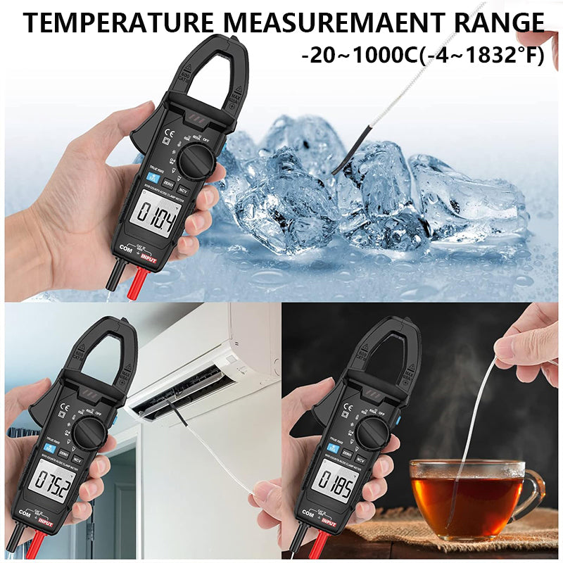 The clamp meter can accurately measures max 600A AC/DC current, 600V AC/DC voltage, resistance, capacitance, continuity, temperature, diode; A perfect troubleshooting tool that will help you solve electrical problems in the car, industrial or at home quickly and safely